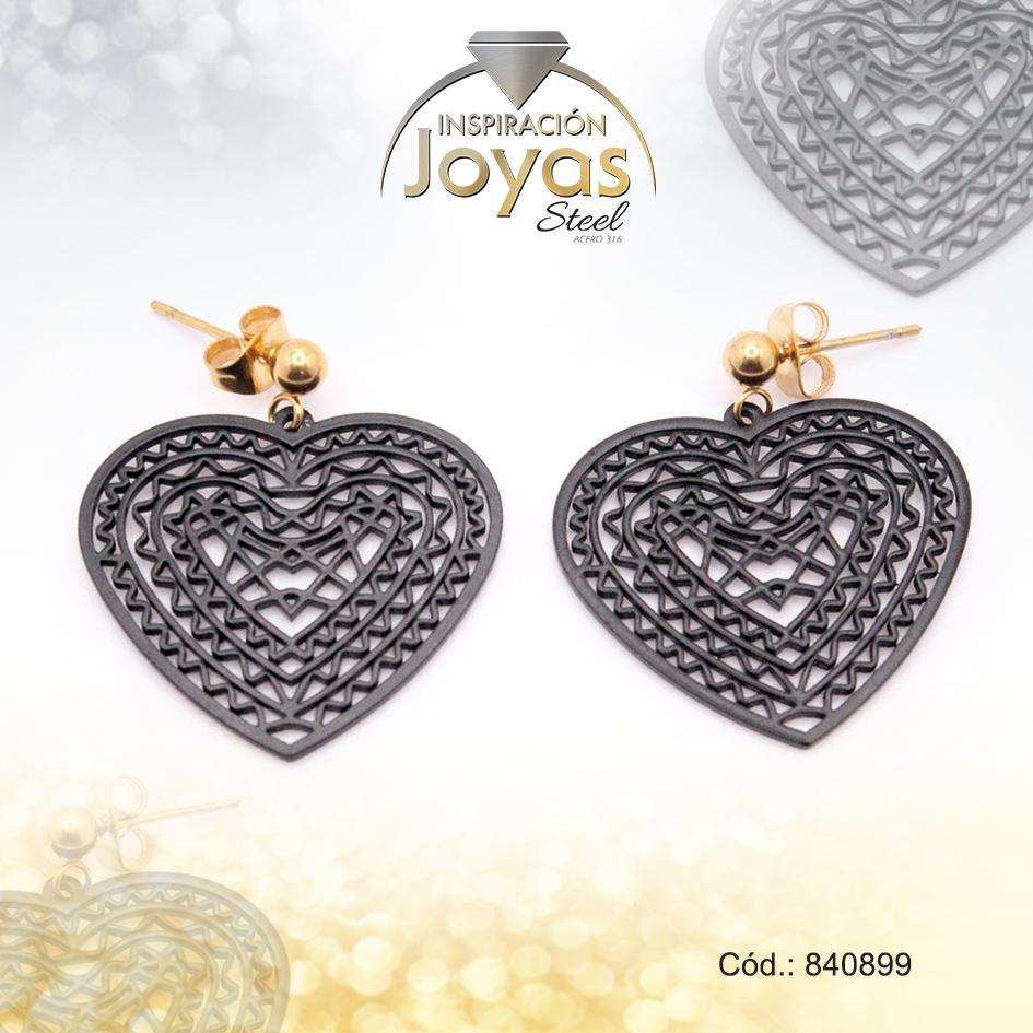 Zarcillo de Acero Colgante Piedra Dorado Corazón – 840899