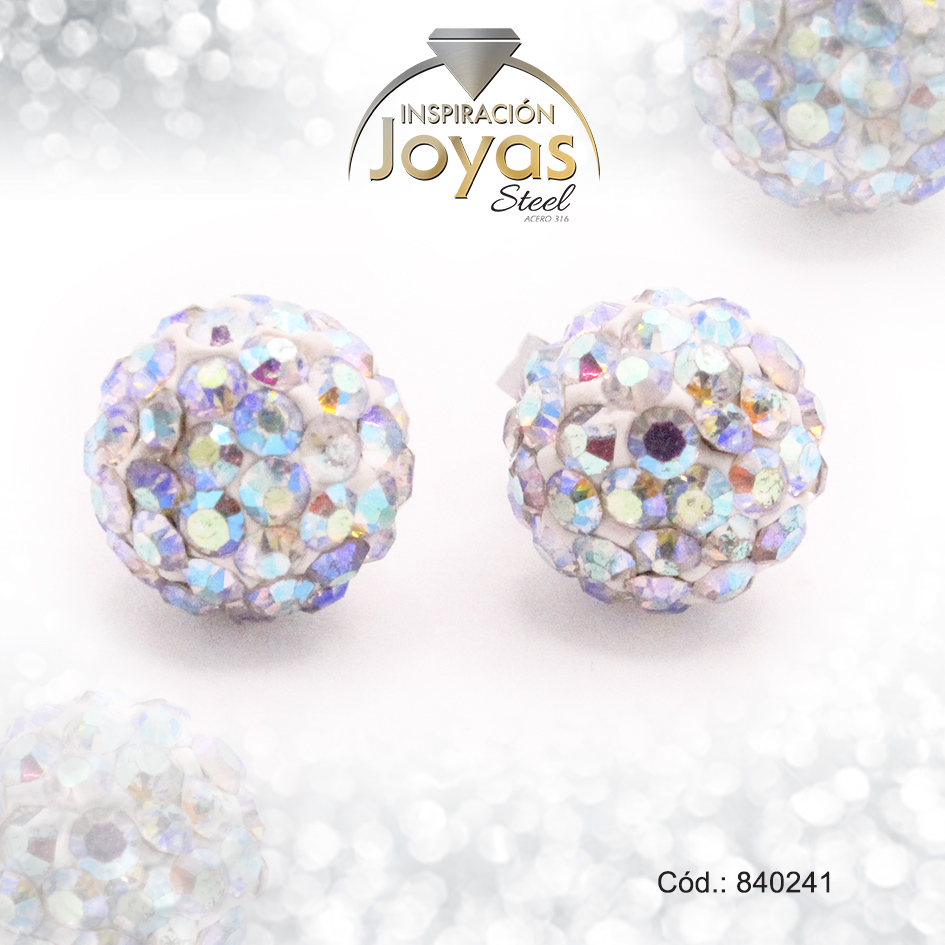 Zarcillo de Acero Esfera Micro Circón Plateado Blanco – 840241
