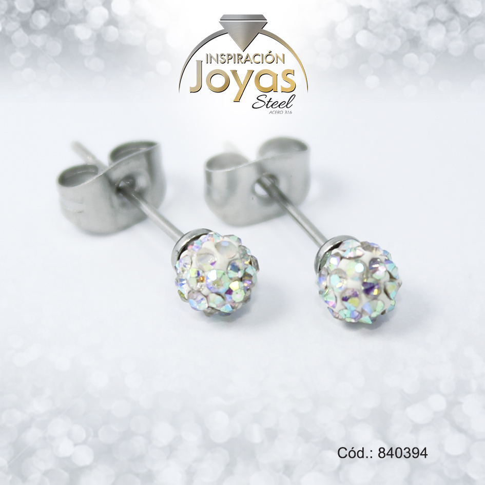 Zarcillo de Acero Esfera Micro Circón Plateado Blanco – 840394