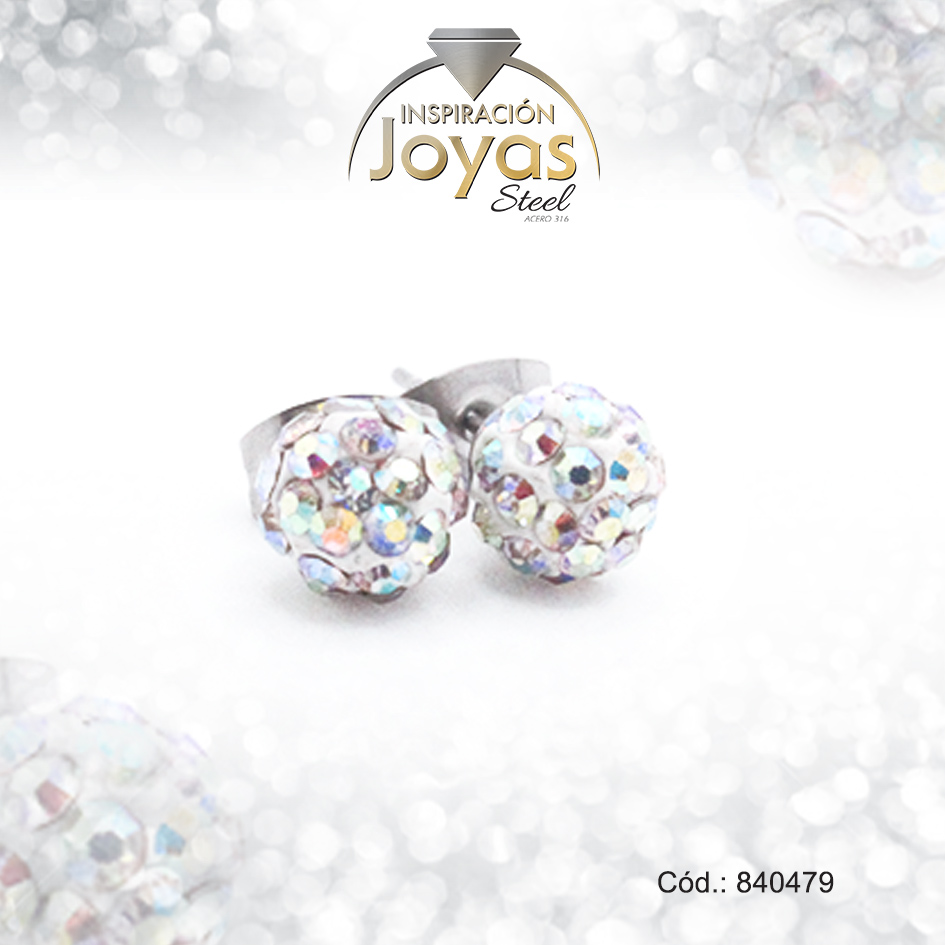 Zarcillo de Acero Esfera Micro Circón Plateado Blanco – 840479
