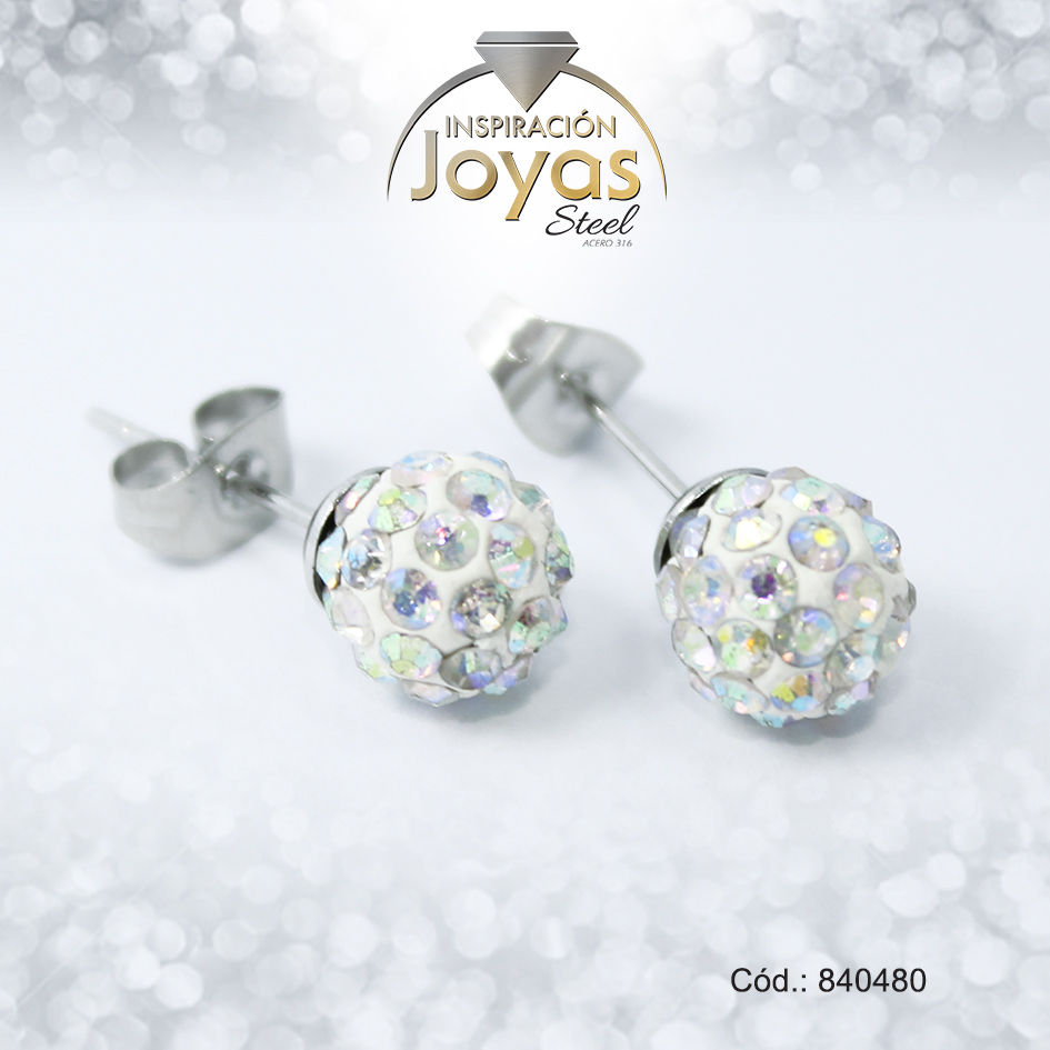 Zarcillo de Acero Esfera Micro Circón Plateado Blanco – 840480