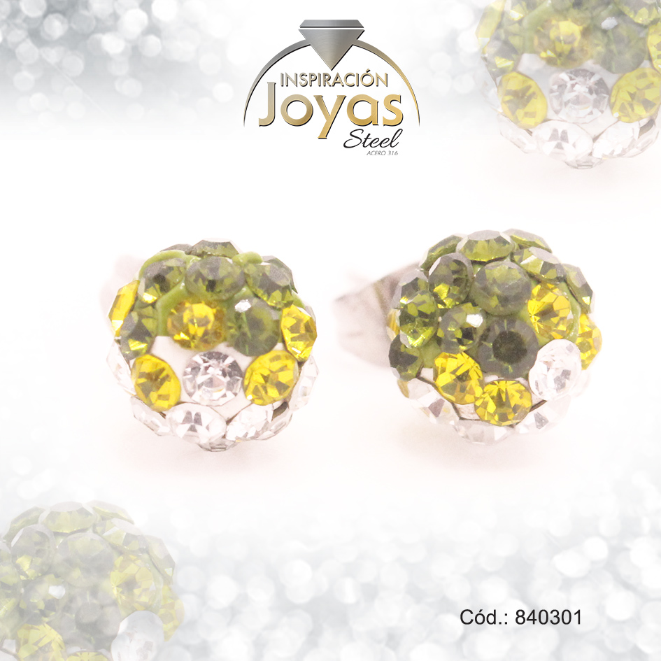 Zarcillo de Acero Esfera Micro Circón Plateado Blanco/Verde – 840301