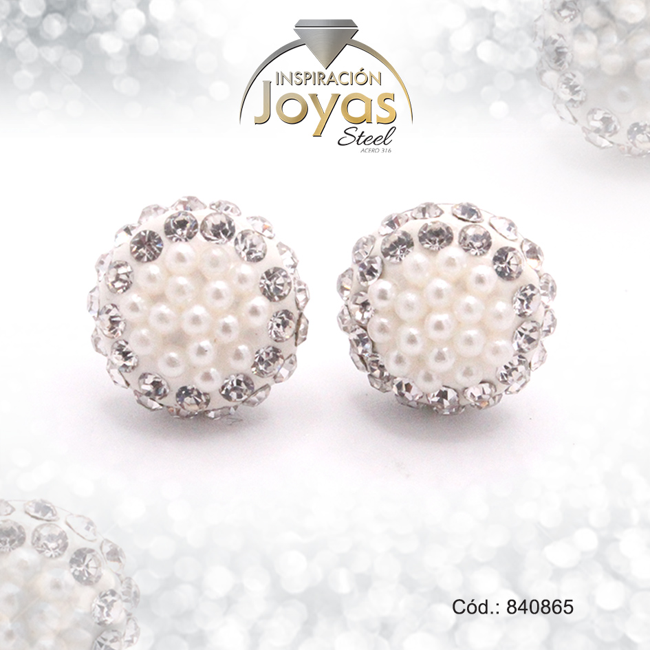Zarcillo de Acero Esfera Micro Circón Plateado Media Blanco – 840865
