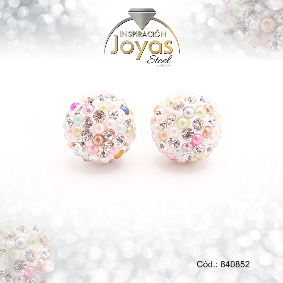 Zarcillo de Acero Esfera Micro Circón Plateado Multi Color – 840852