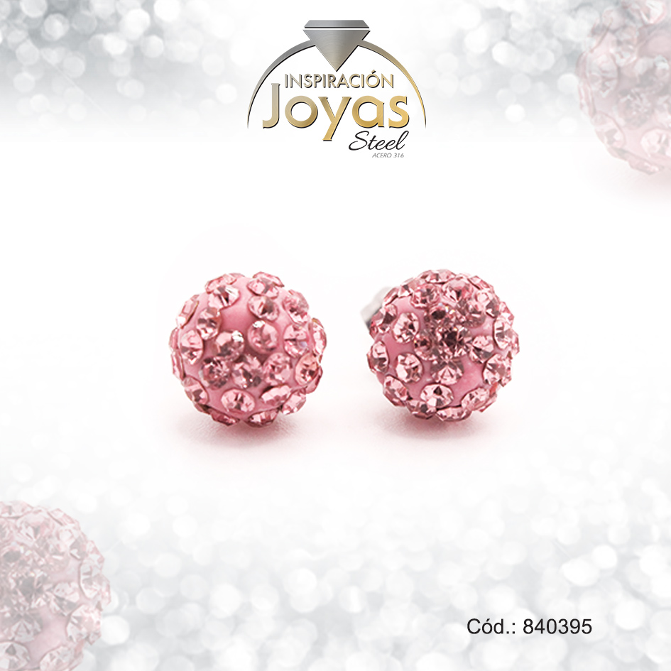 Zarcillo de Acero Esfera Micro Circón Plateado Rosado – 840395