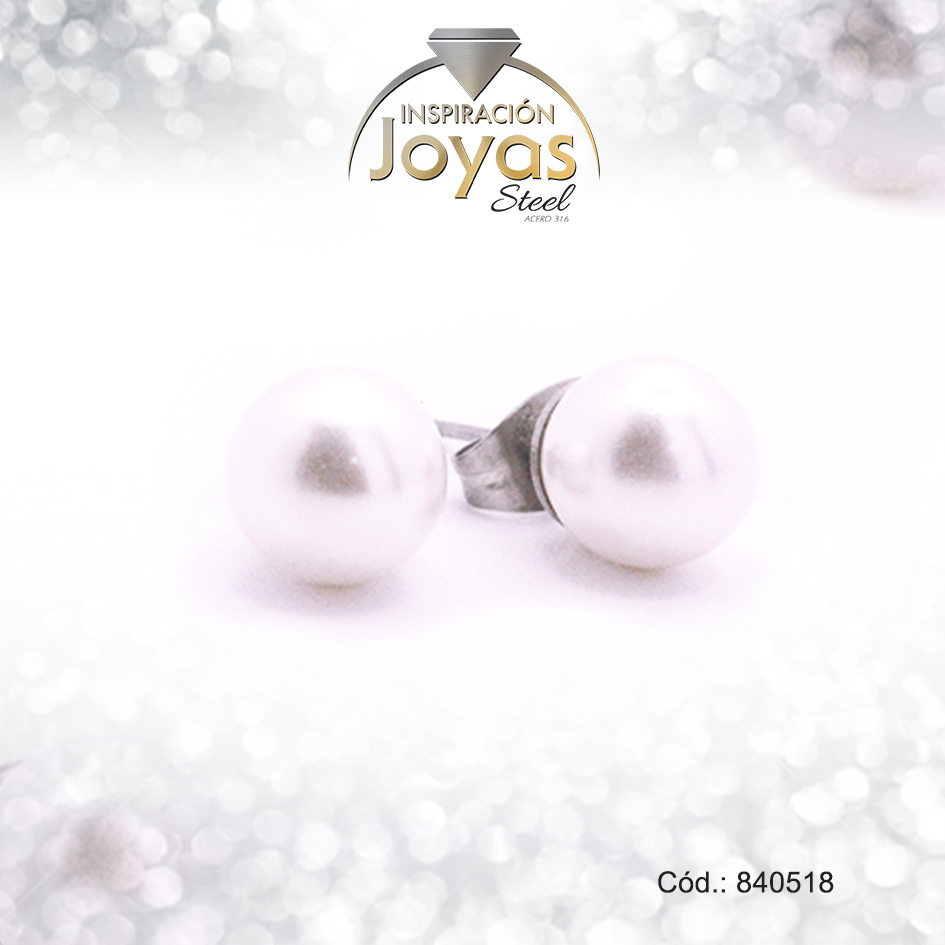 Zarcillo de Acero Esfera Perla Plateado – 840518
