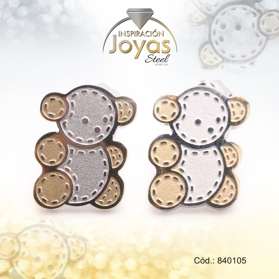 Zarcillo de Acero Variado 2 Tonos Oso – 840105