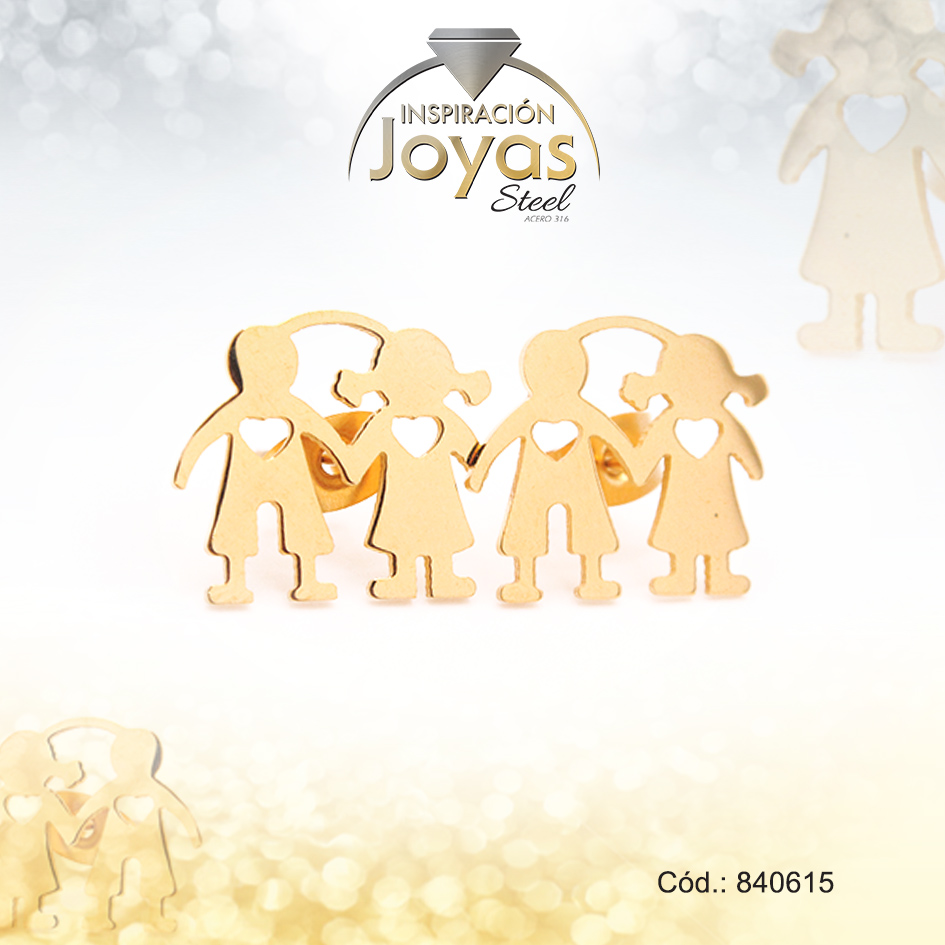 Zarcillo de Acero Variado Dorado Familia – 840615