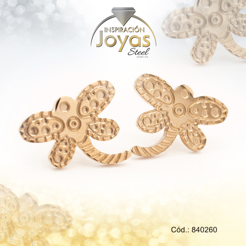Zarcillo de Acero Variado Dorado Libélula – 840260
