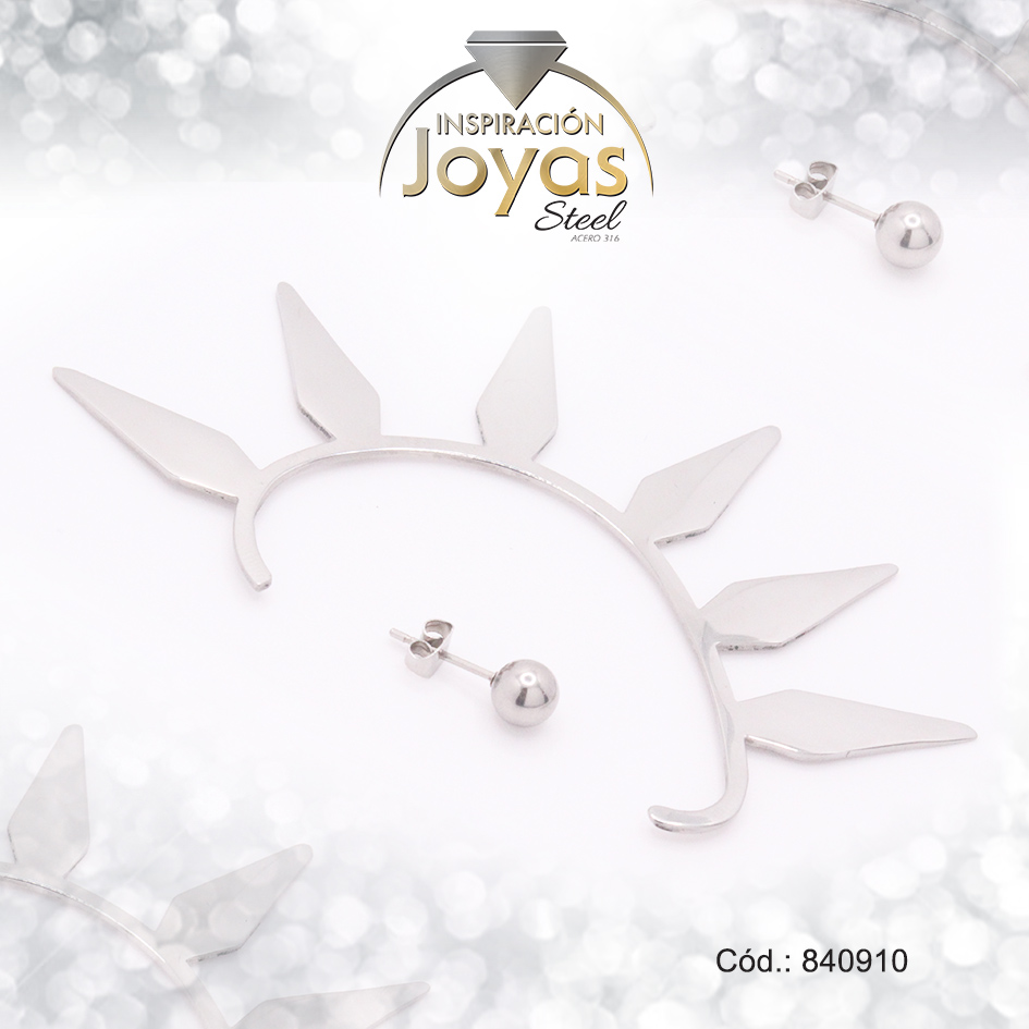Zarcillo de Acero Variado Orejera Plateado Sol – 840910