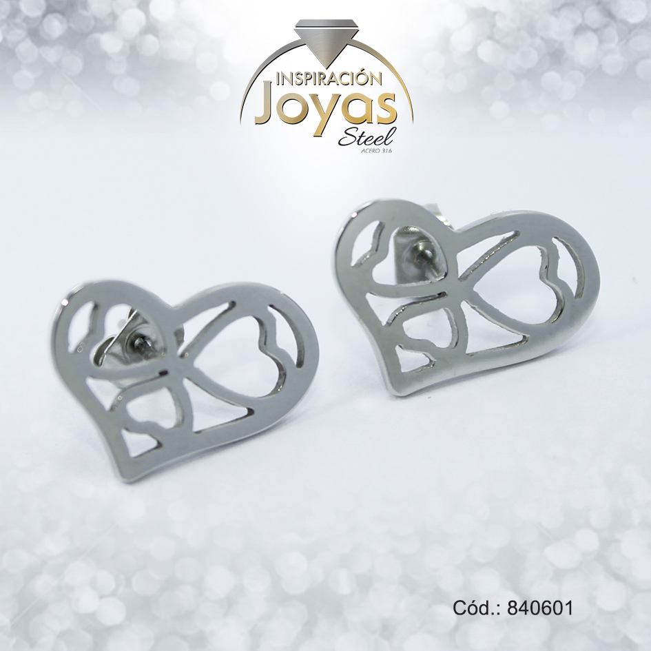 Zarcillo de Acero Variado Plateado Corazón – 840601