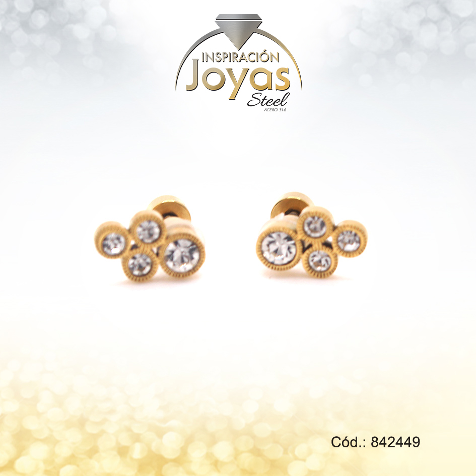Zarcillo De Acero Varios Circones Dorado – 842449