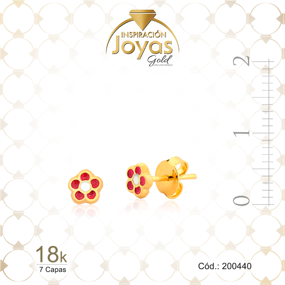 Zarcillo de Oro Enchapado Dorado Aleación Esmalte Flor Rosado Ancho: 0,4 Alto: 0,4 – 200440