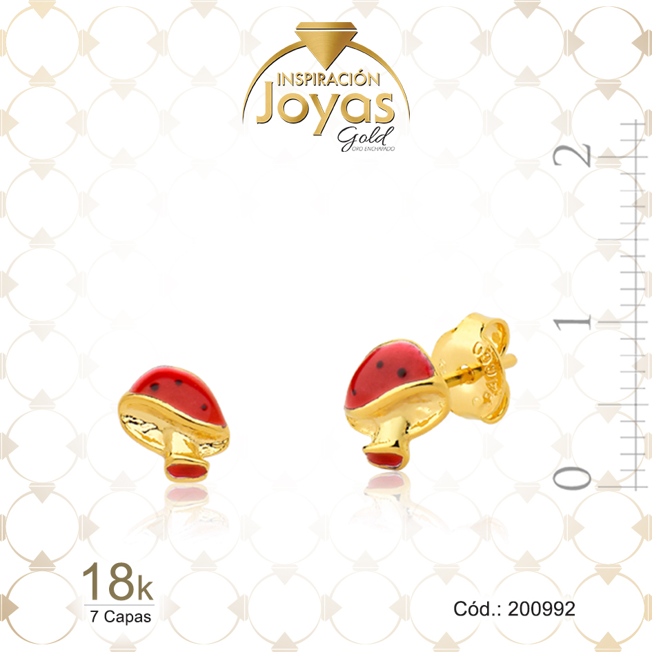 Zarcillo de Oro Enchapado Dorado Aleación Esmalte Hongo Rojo Ancho: 0,6 Alto: 0,6 – 200992