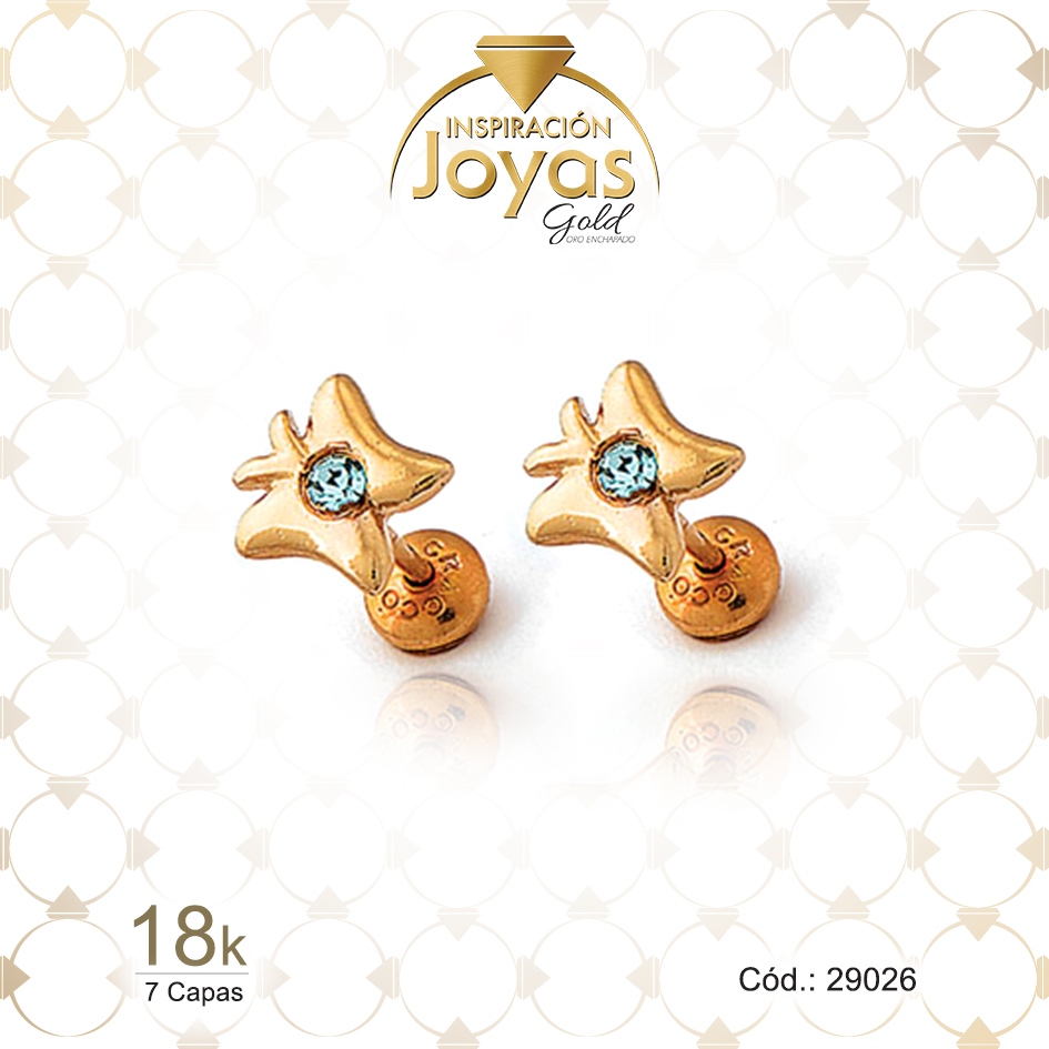 Zarcillo de Oro Enchapado Dorado Bebé Circón Mariposa Blanco Ancho: 0,7 Alto: 0,7 – 29026