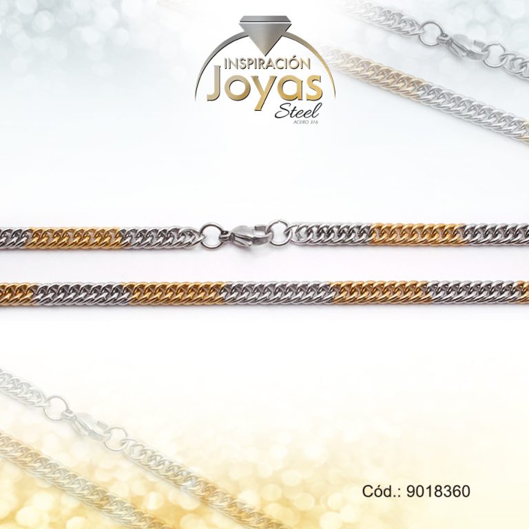 Cadena de Acero Caballero 2 Tonos Tejido Barbado Medida 60 cm – 9018360