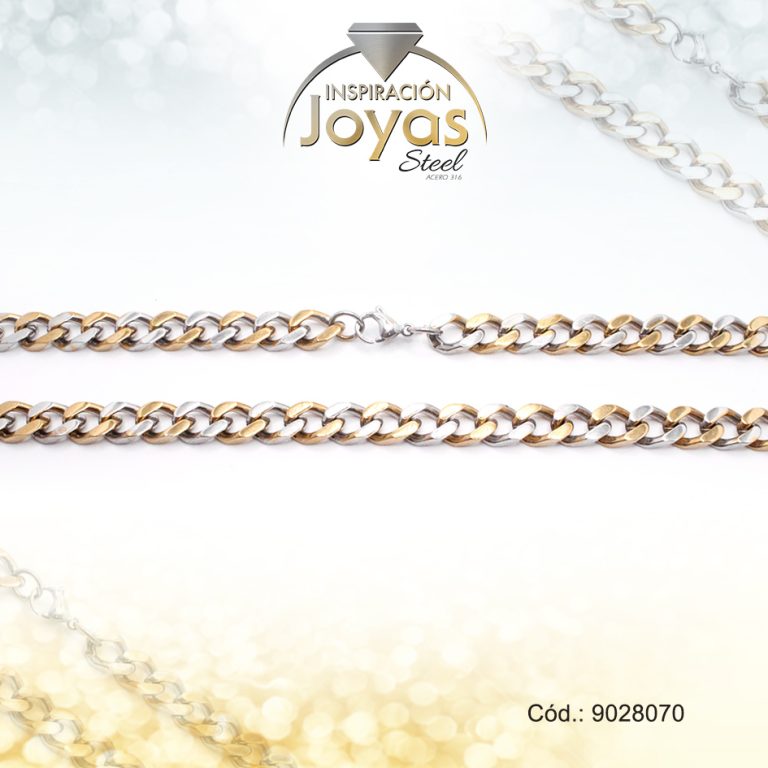 Cadena de Acero Caballero 2 Tonos Tejido Barbado Medida 70 cm – 9028070