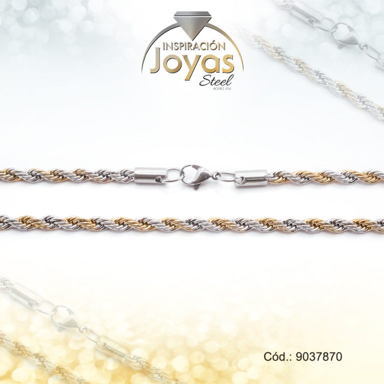 Cadena de Acero Caballero 2 Tonos Tejido Cordón Salomónico Medida 70 cm – 9037870