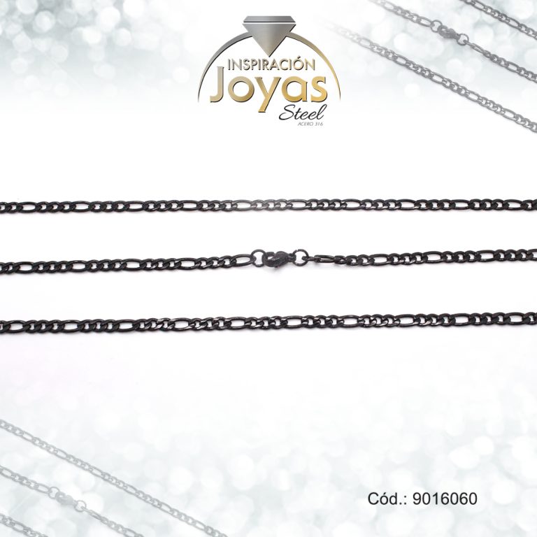 Cadena de Acero Caballero Negro Tejido Figaro Medida 60 cm – 9016060