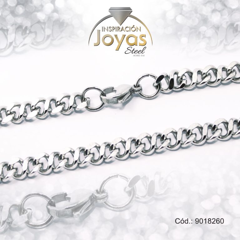 Cadena de Acero Caballero Plateado Tejido Eslabón Cubano Medida 60 cm – 9018260