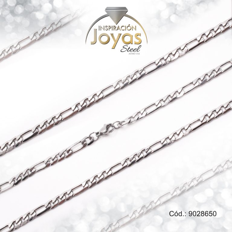 Cadena de Acero Caballero Plateado Tejido Figaro Medida 30 cm – 9019630