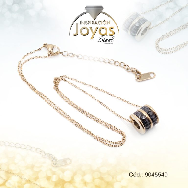Cadena de Acero Dorado Con Dije Cilindro Esmaltado Esmalte Negro Medida 40 cm – 9045540