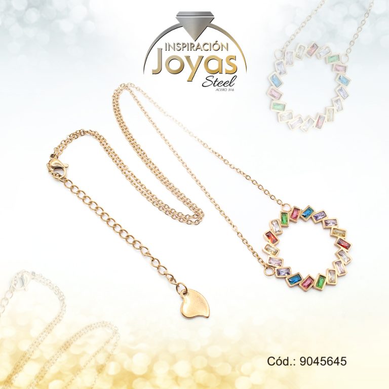 Cadena de Acero Dorado Con Dije Arco Iris Piedra Multi Color Medida 45 cm – 9045645