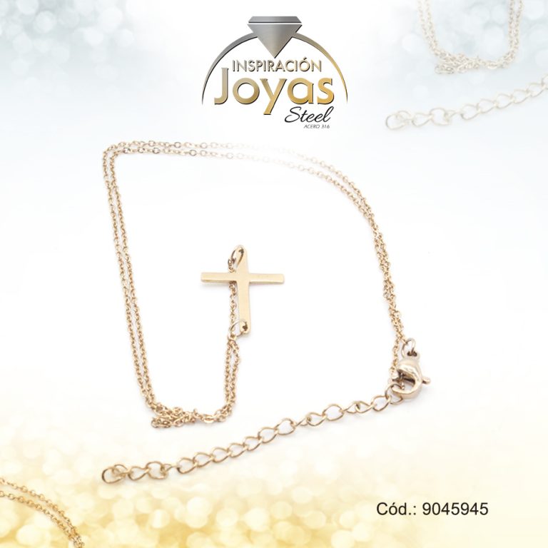 Cadena de Acero Dorado Con Dije Cruz Medida 45 cm – 9045945