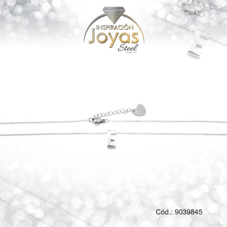 Cadena de Acero Plateado Con Dije Letra E Medida 45 cm – 9039845