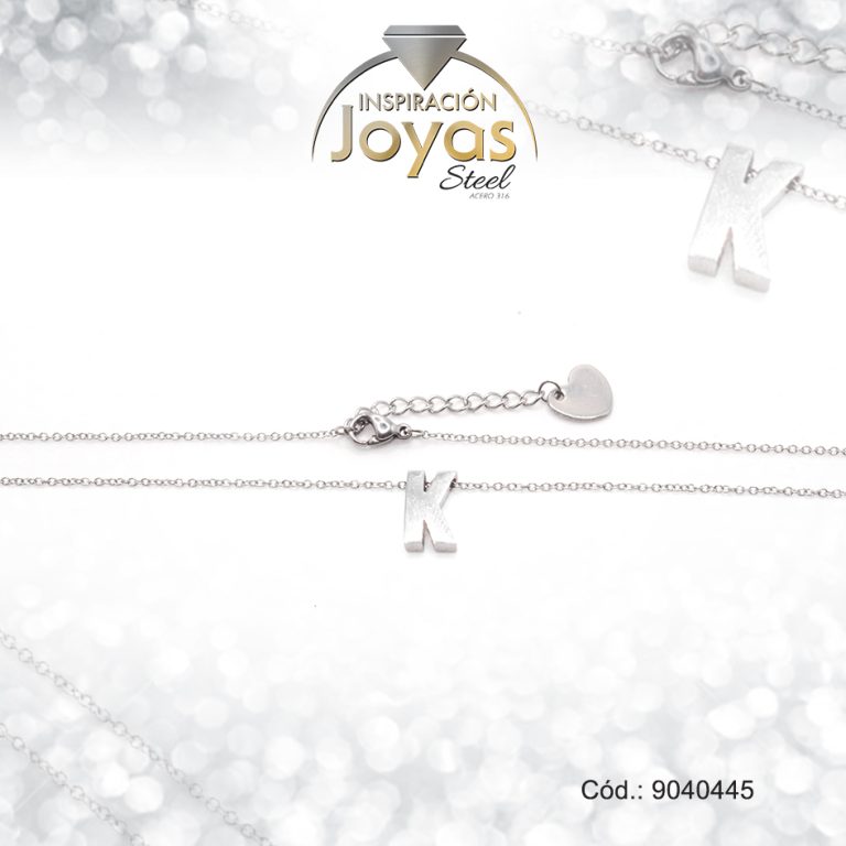 Cadena de Acero Plateado Con Dije Letra K Medida 45 cm – 9040445