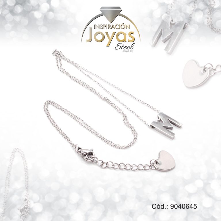Cadena de Acero Plateado Con Dije Letra M Medida 45 cm – 9040645