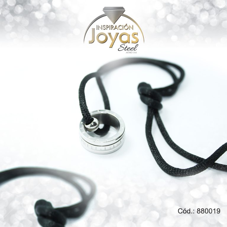 Conjunto de Acero Dama Cadena + Dije + Zarcillo Circulo 2 Tonos Cuero Negro – 880347