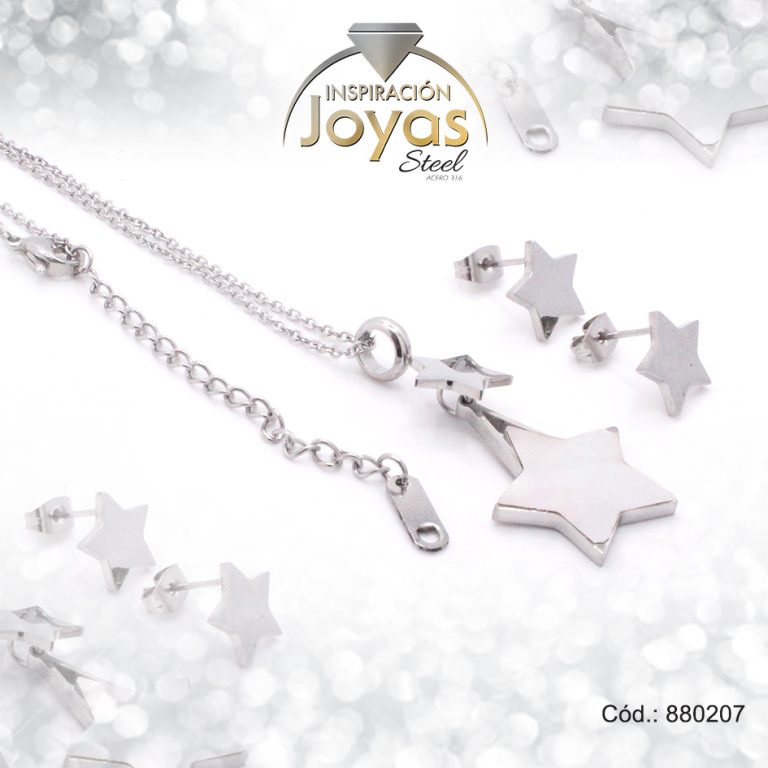 Conjunto de Acero Dama Cadena + Dije + Zarcillo Estrella Plateado – 880207
