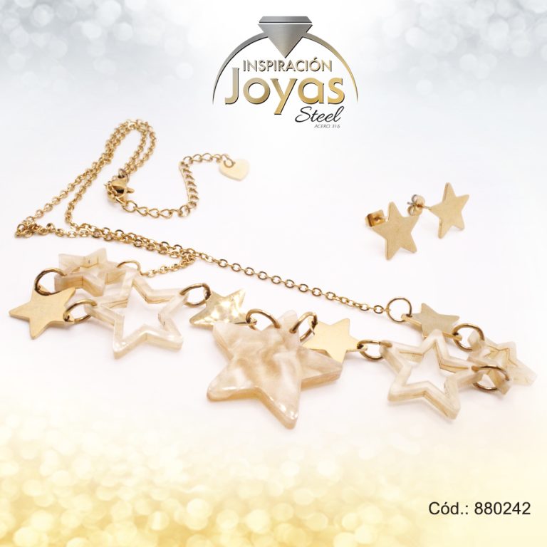 Conjunto de Acero Dama Cadena + Dije + Zarcillo Estrella Dorado Nacar – 880242
