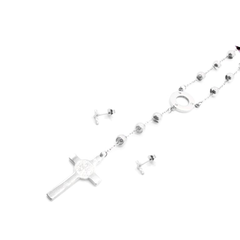 Conjunto de Acero Dama Cadena + Dije + Zarcillo Cruz Plateado – 880288