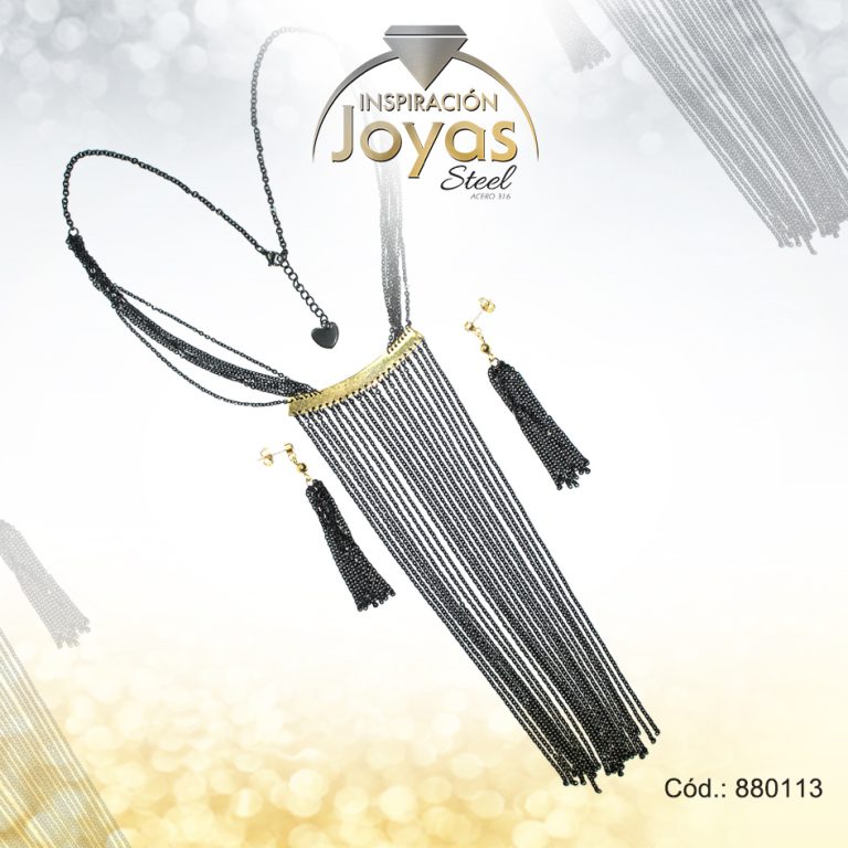 Conjunto de Acero Dama Gargantilla + Zarcillo Cadenas Negro – 880113