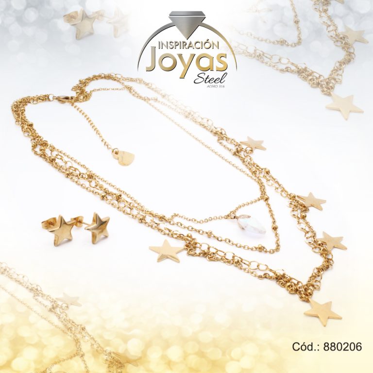 Conjunto de Acero Dama Gargantilla + Zarcillo Estrella Dorado – 880206