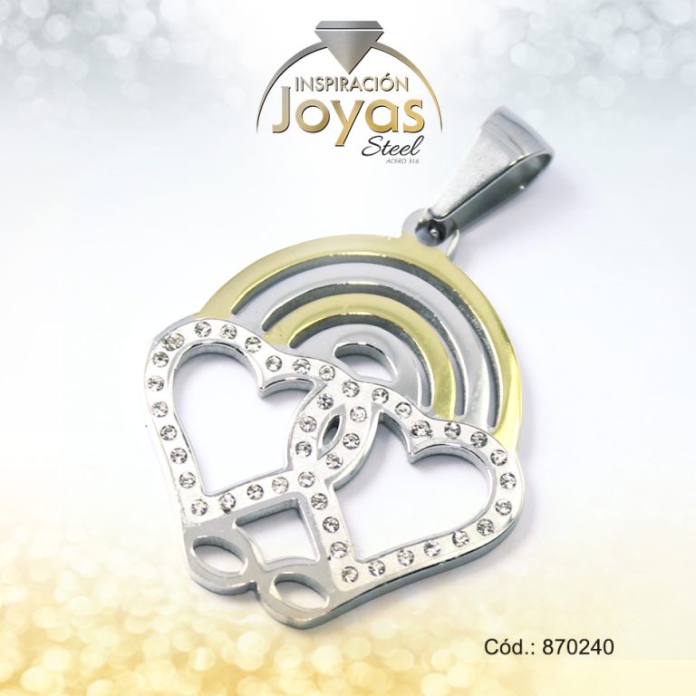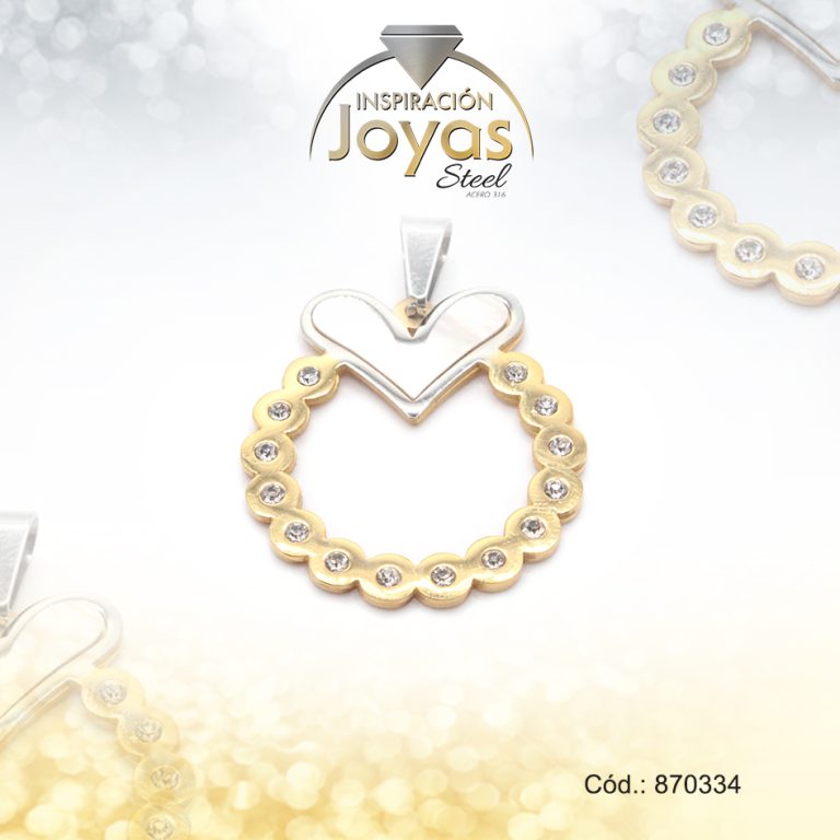 Dije de Acero Aleación Circón 2 Tonos Corazón – 870274