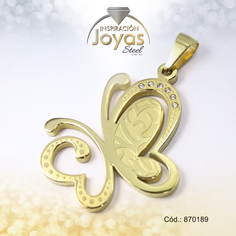 Dije de Acero Aleación Circón Dorado Mariposa – 870619