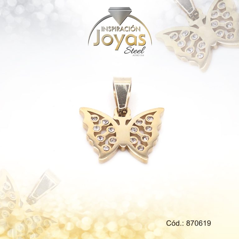 Dije de Acero Aleación Circón Dorado Mariposa – 870298
