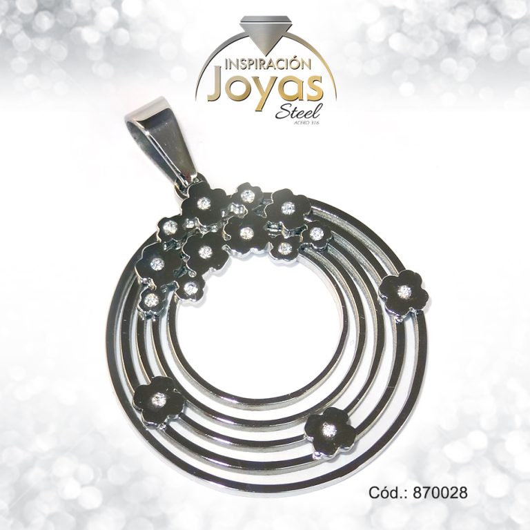 Dije de Acero Aleación Circón Plateado Círculo – 870028