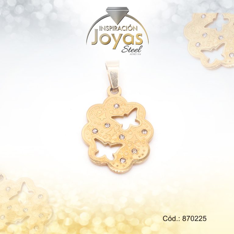 Dije de Acero Aleación Circón Dorado Mariposa – 870628