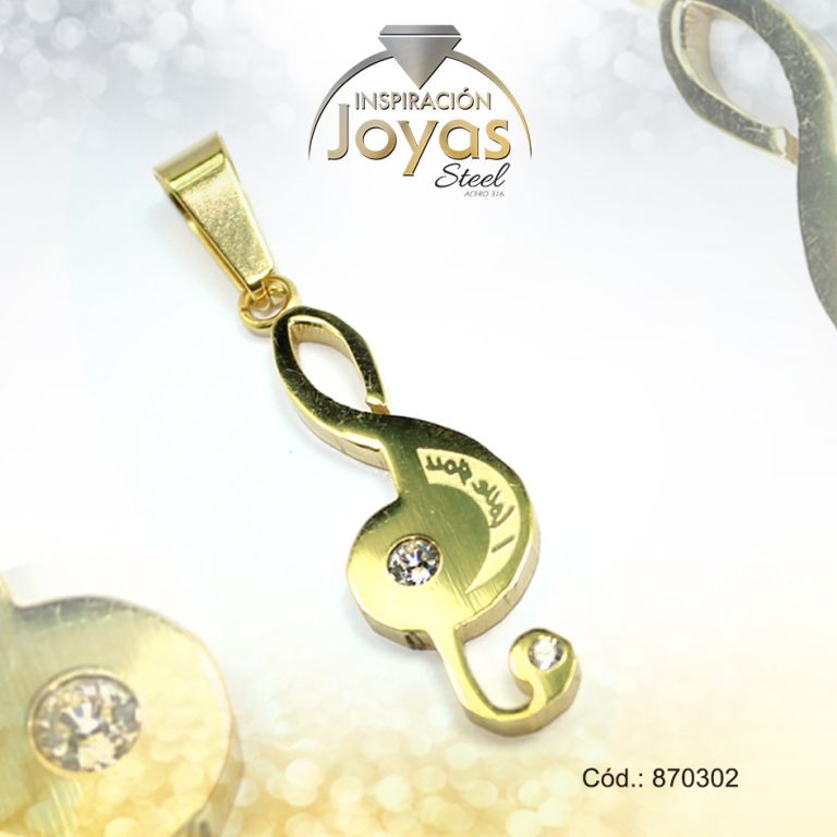 Dije de Acero Aleación Circón Dorado Nota Musical – 870302