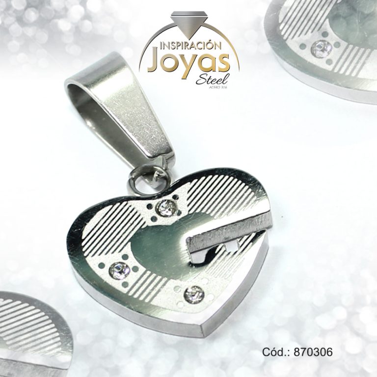 Dije de Acero Aleación Circón Plateado Corazón – 870300