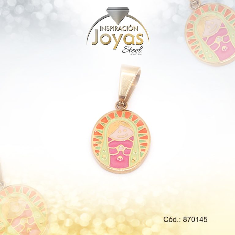 Dije de Acero Aleación Esmalte Dorado Multi Color Virgen – 870145