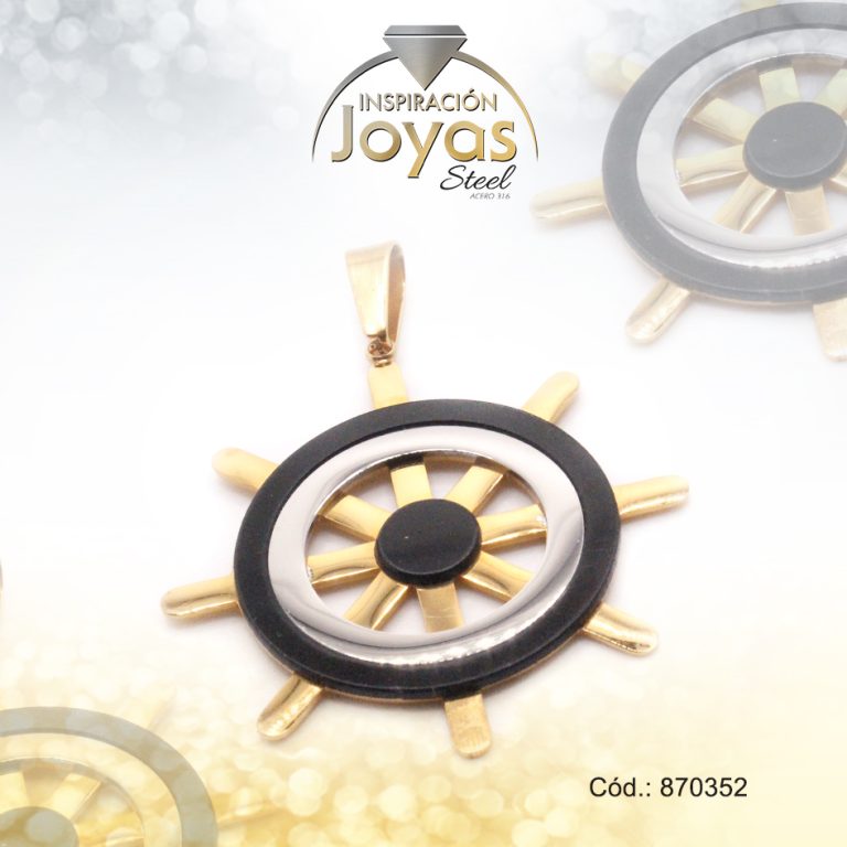 Dije de Acero Aleación Esmalte Dorado y Negro Timón – 870352