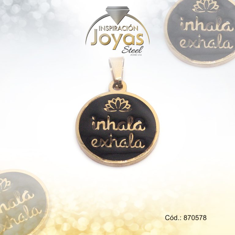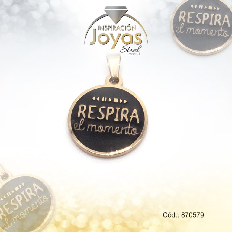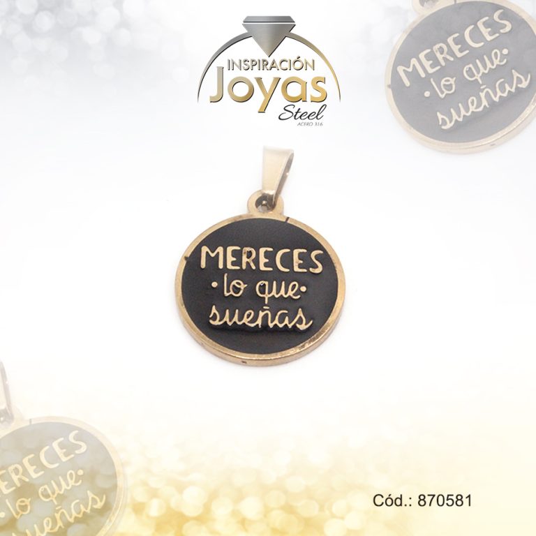 Dije de Acero Aleación Esmalte Motivacional Dorado Círculo – 870581