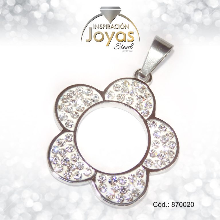 Dije de Acero Aleación Micro Circón Plateado Flor – 870020