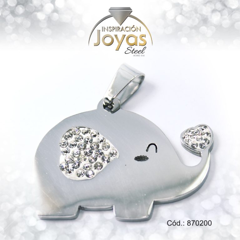 Dije de Acero Aleación Micro Circón Plateado Elefante – 870200