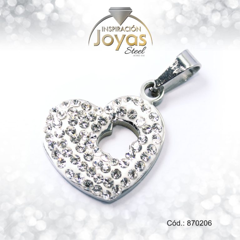 Dije de Acero Aleación Micro Circón Plateado Corazón – 870206